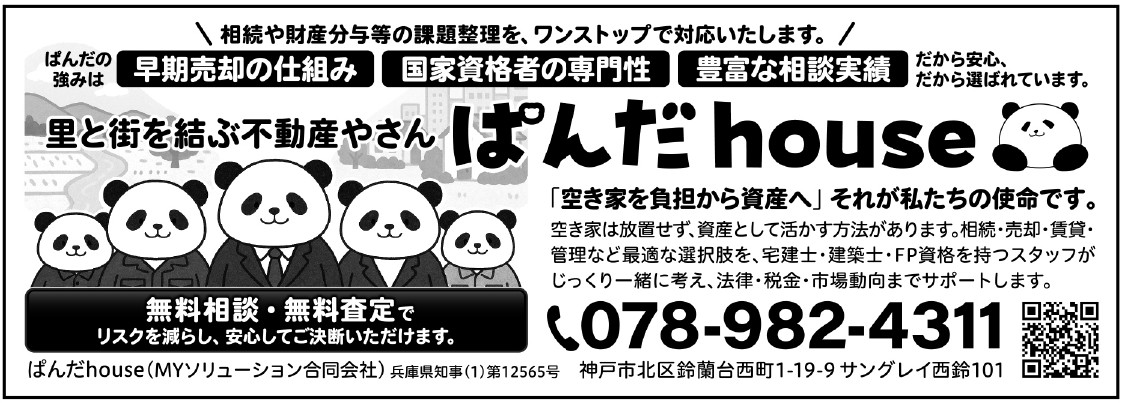 このたび、弊社の空き家対応サービスに関する広告が、兵庫県下で約4.3万部発行されている産経新聞に10月8日掲載されることになりました。 「神対応サービス」という理念のもと、私たちは空き家に関するあらゆる課題に迅速・丁寧に対応し、必要とされる方々に確実に想いを届けることを目指しております。 また、こうして弊社ホームページをご覧いただいている皆様にも、心より感謝申し上げます。皆様のご支援のおかげで、9月は2万PVを超えるアクセスをいただきました。これは、私たちの取り組みを応援してくださる皆様のおかげです。 今後も、空き家問題や不動産売買、相続・財産分与・早期売却など、幅広い不動産課題に誠実かつ全力で取り組み、地域の皆様に安心と信頼をお届けしてまいります。 どうぞ、これからもぱんだhouseの取り組みにご期待ください。